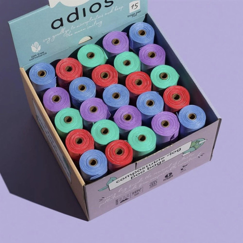 Adios Plastic Compostable Poop Bag Counter Top - 50 Rolls