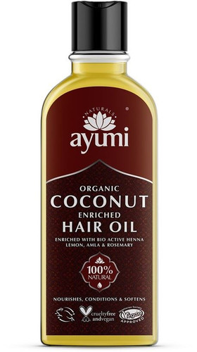 Ayumi Coconut Enriched Hair Oil is a natural treatment designed to nourish and revive dry, brittle and damaged hair. With coconut, rosemary and a blend of nine plant-based ingredients, it supports scalp health while strengthening hair from root to tip.