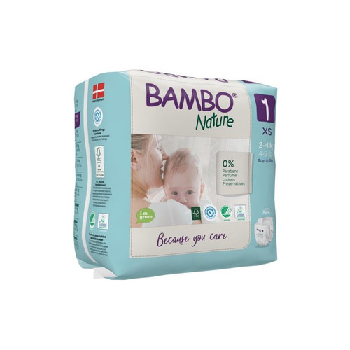 Bambo Nature T1 diapers are designed for newborns weighing 4.4–8.8 lbs, offering premium care and maximum comfort. The absorbent core holds up to 12.6 oz of liquid, keeping your baby dry and comfortable overnight or between changes.