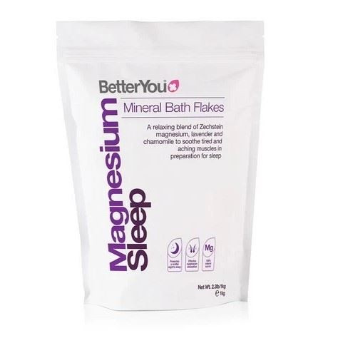 BetterYou Magnesium Sleep Flakes are pure magnesium bath flakes blended with calming lavender and chamomile essential oils to support relaxation and restful sleep. Made with 100% natural Zechstein magnesium chloride, they help slow sensory activity and prepare the body and mind for bedtime.