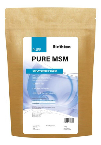 Biethica Pure MSM (Methylsulfonylmethane) is a high-purity, unflavoured supplement designed to support joint flexibility, connective tissue health, and overall wellbeing. MSM provides a natural source of sulphur, an essential mineral involved in maintaining healthy joints, skin, hair, and nails.