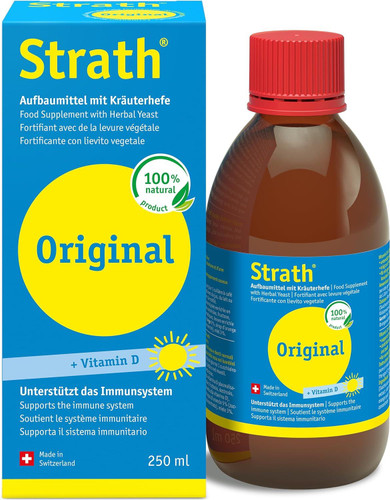 Strath with Vitamin D is a daily liquid supplement designed to support immune health and overall wellbeing. Each adult serving provides 120% NRV of vitamin D, helping maintain normal immune function, muscle health, and bone strength.