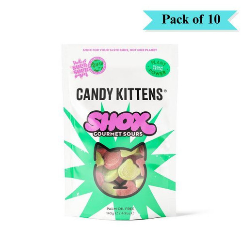 Candy Kittens Sour Shox Vegan Sweets - Pack of 10 (140g each)