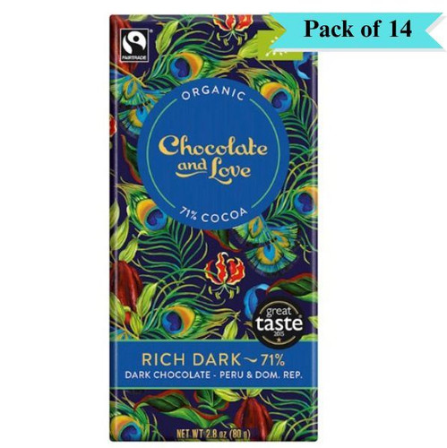 Chocolate and Love Rich Dark Chocolate 71% - Pack of 14 (80g each)