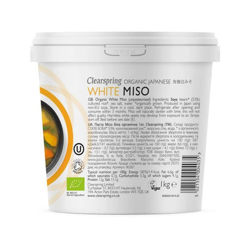 Clearspring Organic Japanese White Miso is crafted from a traditional family recipe from Nagano prefecture, Japan. Unpasteurised and made with organic ingredients, this authentic white miso delivers a creamy texture and a delightful balance of savory and sweet flavors, enriched with robust umami.