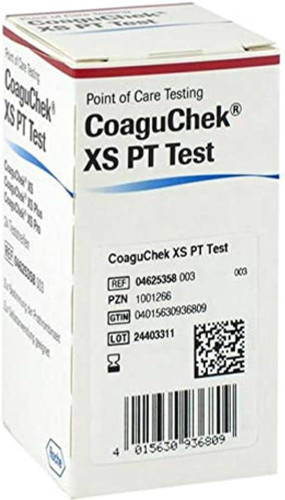 - Box of 24 prothrombin time (PT) test strips for use with the CoaguChek® Pro II Meter.