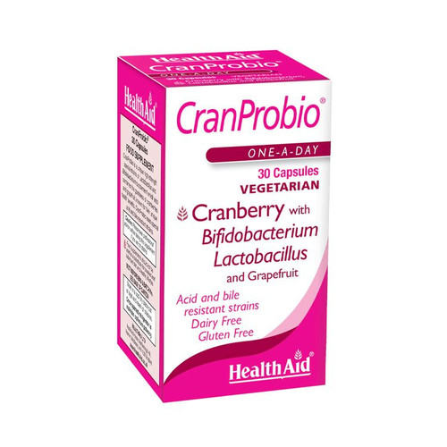 CranProbio is a high-strength probiotic supplement combining Lactobacillus and Bifidobacterium strains with the natural benefits of cranberry and grapefruit. Its special acid- and bile-resistant strains help support digestive health and overall wellbeing.
