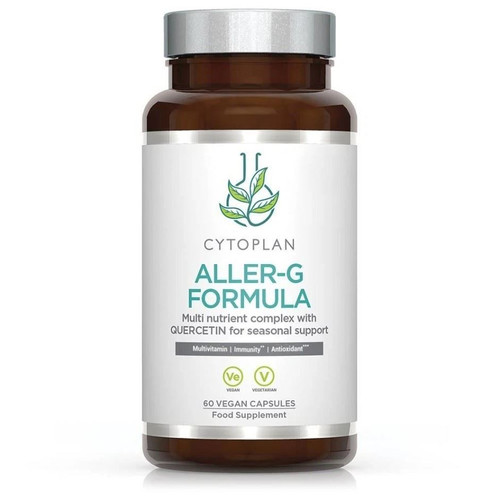 Cytoplan Aller G Formula 60 capsules is a comprehensive multivitamin and mineral supplement designed to support immune health and help the body manage seasonal allergies such as hay fever. Its advanced formula combines natural antihistamines, vitamins, minerals, and beta glucan for optimal immune support.
