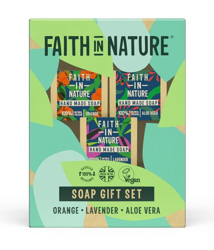 Each Faith In Nature gift set is delivered in a 100% recycled and recyclable plastic-free gift box and contains products made using the highest quality, naturally derived, cruelty-free ingredients.