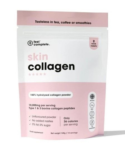 Feel Complete Skin Collagen is a premium collagen supplement designed to support muscle recovery, joint health, and overall wellness. Made with grass-fed, hydrolysed bovine collagen peptides (types I & III), it provides high bioavailability for rapid absorption, helping maintain healthy skin, hair, nails, and joints