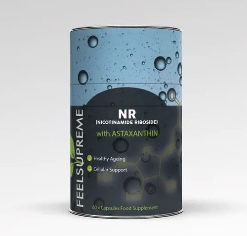 Feel Supreme Nicotinamide Riboside & Astaxanthin Capsules are an advanced NAD+ boosting supplement designed to support cellular energy, repair, and longevity. Nicotinamide Riboside (NR) helps increase NAD+ levels, a vital coenzyme involved in DNA repair, energy metabolism, and protection against oxidative stress, slowing down the signs of cellular aging.