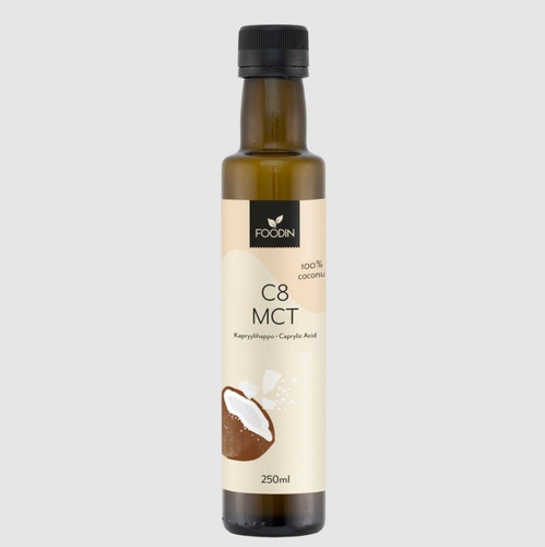 Caprylic Acid Oil is a pure, flavourless, and odourless medium-chain fatty acid derived from coconuts. It is quickly absorbed by the body and helps support energy levels, nutrient absorption, and ketogenic diets.