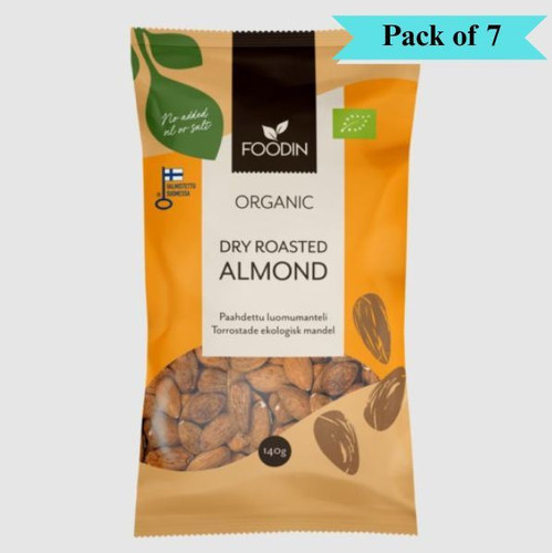 Foodin Organic Dry Roasted Almonds - Pack of 7 (140g each)