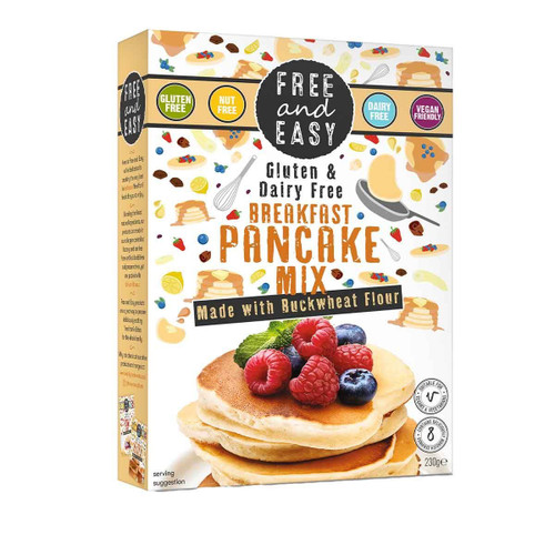 Free & Easy's Breakfast Pancake Mix is an easy-to-use, 'free from' vegan baking kit made with buckwheat flour, coconut blossom sugar, chickpea flour, and corn starch. Simply mix the ingredients, pop them in a pan, and flip!