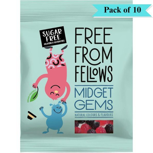 Enjoy the classic sweetness of Free From Fellows Midget Gems in a 10 x 100g pack. These colorful, chewy sweets are sugar-free, gluten-free, and gelatine-free, delivering a guilt-free treat that everyone can enjoy.