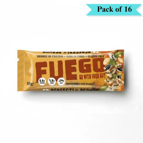Fuego Go With Your Gut Perfectly Peanut Superfood Fibre Bar - Pack of 16 (50g each)