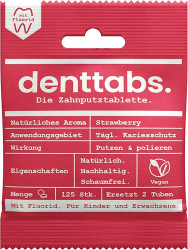 Strawberry Toothpaste Tablets with Fluoride are a gentle, waterless oral care solution suitable for the whole family. Infused with 100% natural ingredients and a mild strawberry flavor, these chewable tablets polish teeth while preventing bacteria and deposits from adhering.