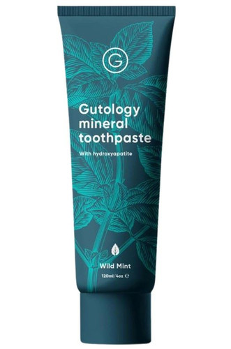 Gutology Toothpaste is a fluoride-free, microbiome-friendly toothpaste formulated with biomimetic hydroxyapatite, a mineral that mirrors natural tooth enamel. It supports enamel strength, remineralization, and a balanced oral microbiome without harsh additives.