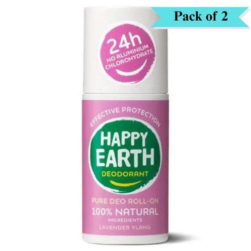 Happy Earth Natural Deodorant Roll-On Lavender Ylang - Pack of 2 (75ml each)