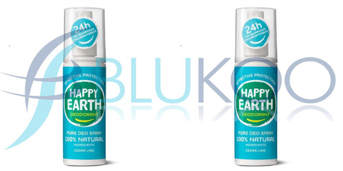 Happy Earth Natural Deodorant Spray Cedar Lime - Pack of 2 (100ml each)