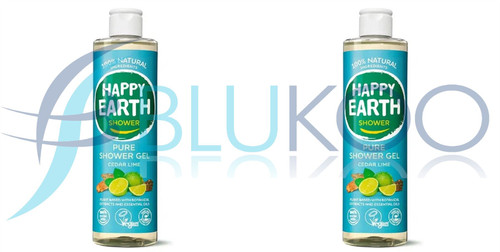 Happy Earth Natural Shower Gel Cedar Lime - Pack of 2 (300ml each)