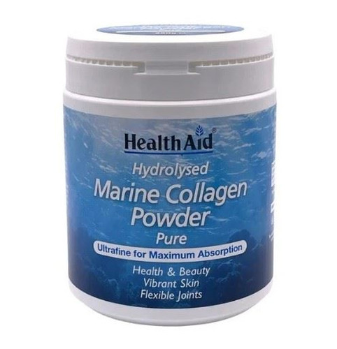 HealthAid Marine Collagen Powder is a premium hydrolysed collagen supplement rich in Type I, II, and III collagen. Collagen is the main structural protein found in connective tissues including skin, joints, bones, hair, nails, muscles, and tendons. Hydrolysed collagen is broken down into smaller peptides, improving absorption and bioavailability, supporting healthy skin, joint mobility, and overall connective tissue health. This powder promotes skin rejuvenation, elasticity, hydration, and a youthful glow from the inside out.