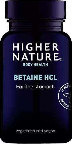 Higher Nature Betaine HCL for the Stomach is a targeted digestive support supplement designed to help improve stomach acid efficiency. It supports the digestion of protein-rich foods such as meat, cheese, and beans, making it ideal for daily digestive balance.