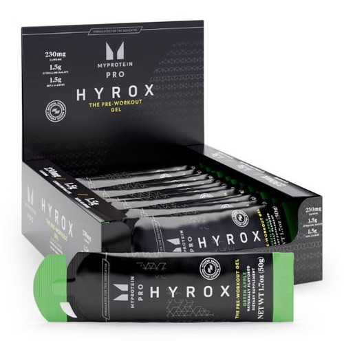 MYPROTEIN Hyrox Pre Workout Gel Green Apple - Pack of 12 (50g each)