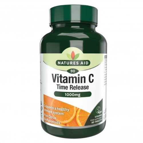 Natures Aid Time Release Vitamin C 1000mg provides a high-strength daily dose of vitamin C with added citrus bioflavonoids. Vitamin C is an essential nutrient that the body cannot produce or store, so it must be topped up daily through food or supplements to maintain healthy levels.