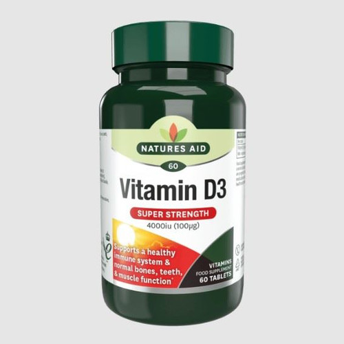 Natures Aid Vitamin D3 4000iu (100ug) Tablets provide a high-strength daily dose to support normal bones, teeth, and muscle function. Known as the Sunshine Vitamin, Vitamin D3 is essential for overall health and wellbeing, especially when sun exposure is limited.