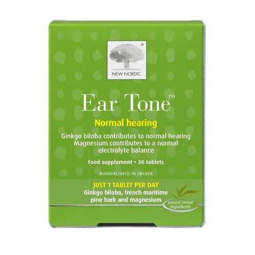 Hearing is the ability to perceive sound through vibrations of the ear, the movements in the hair cells transforms into electric impulses which via the hearing nerve will be transmitted to the brain. Ear Tone™ is a tablet based on a natural extract combination of ginkgo biloba and French maritime pine bark and magnesium. Ginkgo biloba contributes to normal hearing. Magnesium helps maintain the normal function of the nervous system and contributes to a normal electrolyte balance.