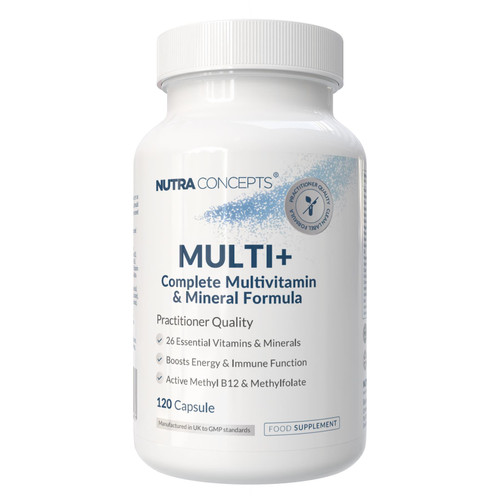 Nutraconcepts Multi+ is a high-quality, comprehensive multivitamin and mineral supplement formulated at clinical potency. It contains all essential vitamins and minerals, plus trace minerals, to support optimum health, energy production, and overall wellbeing.