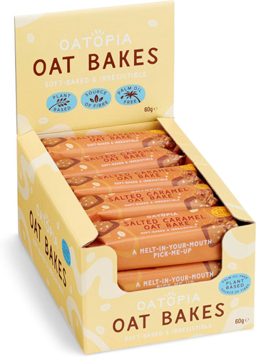 The Oatopia Salted Caramel Oat Bake combines rich, buttery caramel with a hint of sea salt for the perfect sweet-and-salty balance. Soft-baked and naturally plant-based, it delivers a melt-in-the-mouth texture with wholesome flavour.