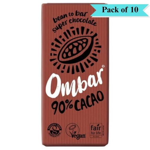 Ombar 90% Cacao Dark Chocolate Bar - Pack of 10 (70g each)