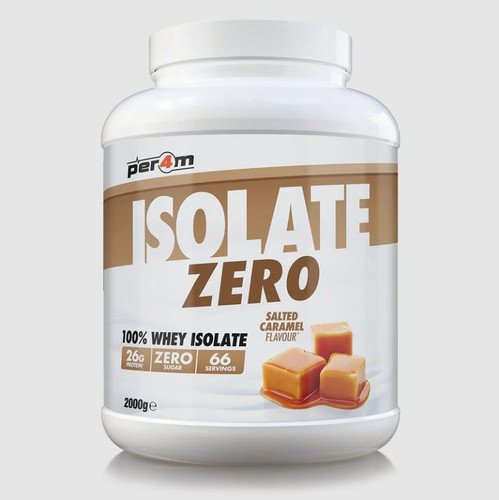 PER4M Isolate Zero Salted Caramel is an ultra-filtered whey protein isolate designed for maximum purity, fast absorption, and effortless mixability. Each serving delivers 26g of high-quality protein with zero sugar and virtually no fat, making it ideal for lean muscle growth, recovery, and clean daily nutrition.