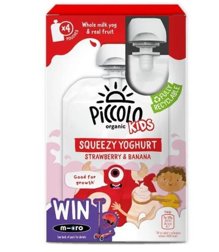 Piccolo Organic Kids Strawberry & Banana Squeezy Yoghurt - set of 4 (100g each)