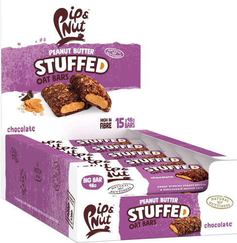 Pip and Nut Peanut Butter Stuffed Oat Bar Chocolate - Pack of 15 (48g each)