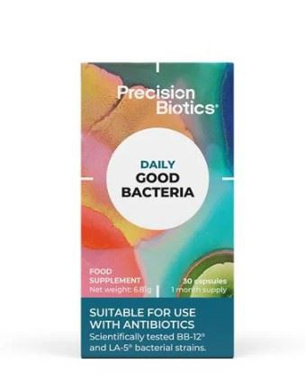 PrecisionBiotics Daily Good Bacteria is a scientifically formulated probiotic supplement designed to support gut health daily. Each capsule contains 4 billion CFU of clinically studied strains BB-12 and LA-5, combined with FOS prebiotic fibers to nourish beneficial bacteria in the gut.