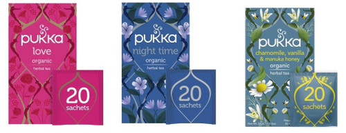 Pukka Herbs Selection - Love, Night Time and Chamomile, Vanilla and Manuka Honey