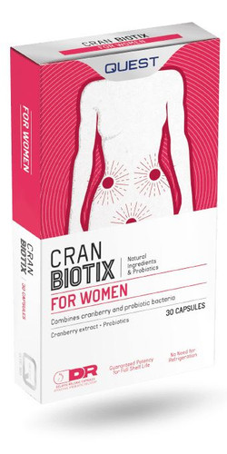 CranBiotix provides a combination of probiotic bacteria and cranberry extract. The active bacteria contained in CranBiotix are lyophilised, encapsulated and then individually sealed by Quest to enhance their stability until the end of the shelf life