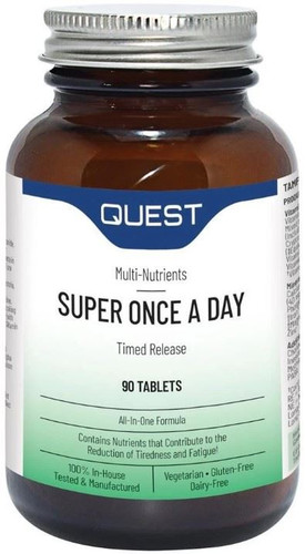 Quest SUPER ONCE A DAY is a high-potency, timed-release multivitamin and mineral supplement designed to provide comprehensive daily nutritional support. Its expertly balanced formula delivers essential vitamins and nutrients that help maintain energy levels, support immune health, and promote overall wellbeing.