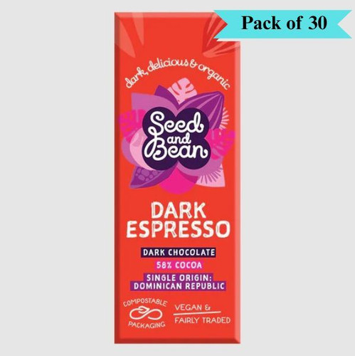 Seed & Bean Dark 58% Espresso Chocolate Bar - Pack of 30 (25g each)