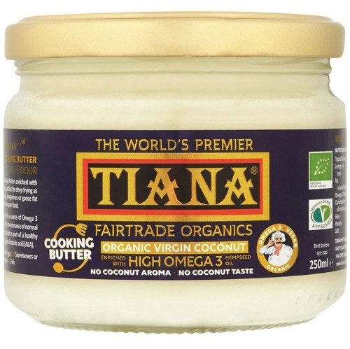 Tiana High Omega 3 Coconut Cooking Butter is a premium, organic blend enriched with high Omega 3 hempseed oil. Designed for health-conscious cooks, it delivers excellent heat resistance without the taste or aroma of coconut, making it versatile for frying, baking, saut�ing, or spreading.