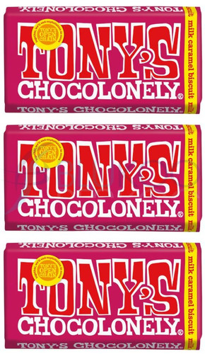 Tonys Chocolonely Milk Caramel Biscuit Chocolate Bar - Pack of 3 (180g each)