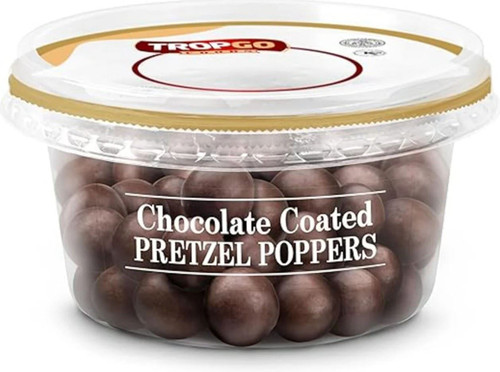 Tropgo Chocolate Coated Pretzel Poppers 150g Tub combine crunchy, non-GMO pretzels with a rich dark chocolate coating. The perfect blend of salty and sweet, these pretzel poppers are an irresistible snack for any occasion.