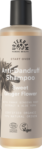 Urtekram Sweet Ginger Flower Star Over Anti-Dandruff Shampoo is a gentle anti-dandruff shampoo enriched with Panax ginseng root extract to help give stronger hair and conditioning aloe vera which retains moisture.