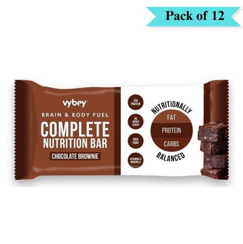 Vybey Complete Nutrition Bar Chocolate Brownie - Pack of 12 (80g each)