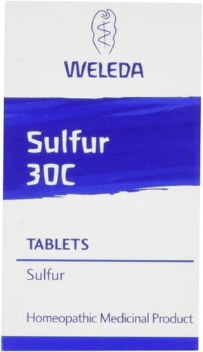 Contains Sulfur 30C homeopathic potency on 100mg lactose/sucrose tablets.